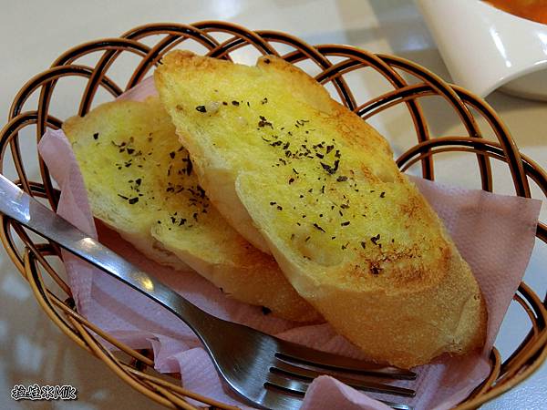 他們家麵包邊邊烤的酥酥的,中間蓬鬆加上蒜香奶油