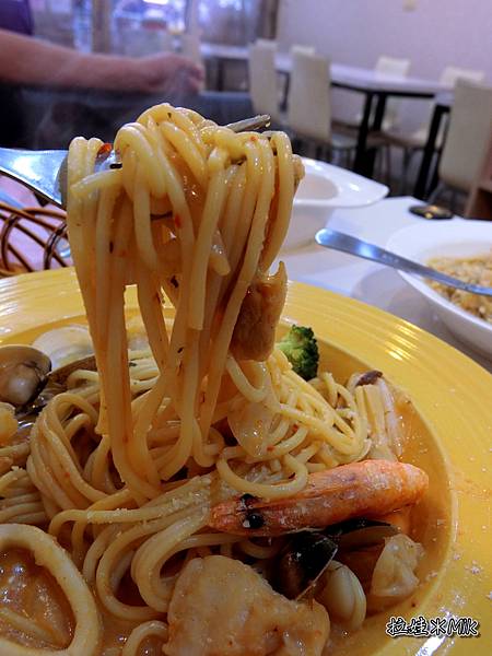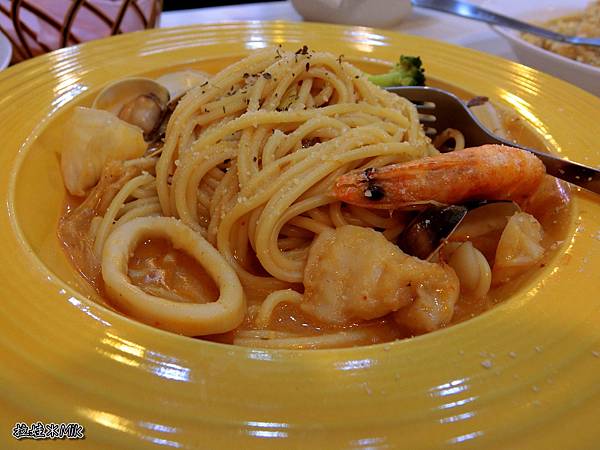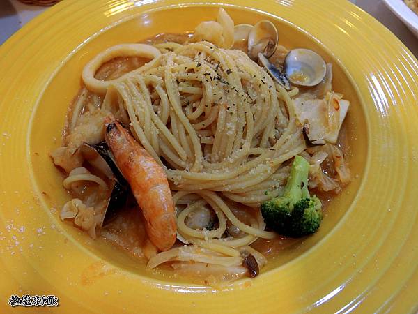 義大利麵的部分則是酸酸辣辣甜甜的泡菜海鮮義大利麵